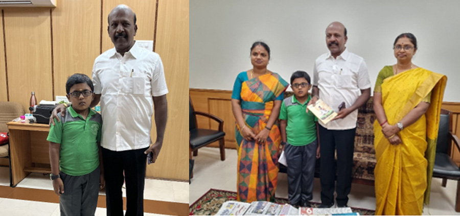 The student, Jai Pranav of 4th grade wrote a letter guided by our teacher Mrs. Kalaiyarasi to The Minister as he admired and was really roused by the various good deeds and works of the Honourable Minister. The Minster took note of this letter and wanted to meet the boy in person.